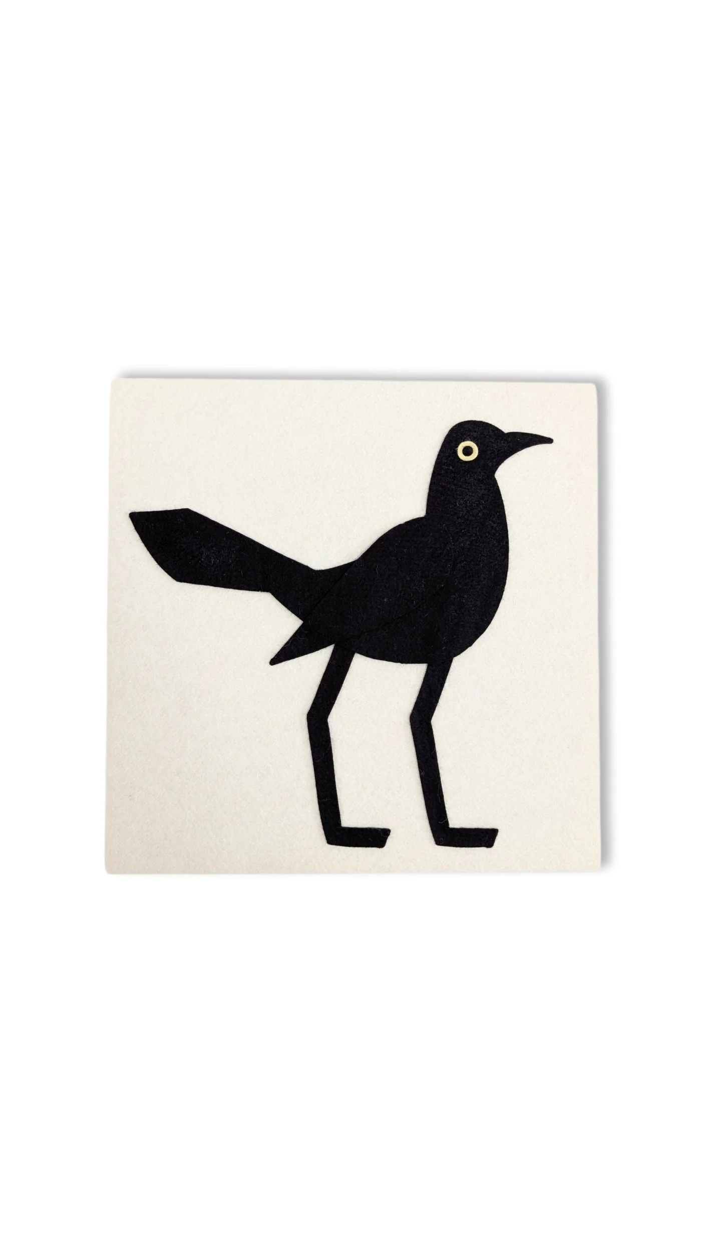 Wool Felt Grackle with White Linen Background.