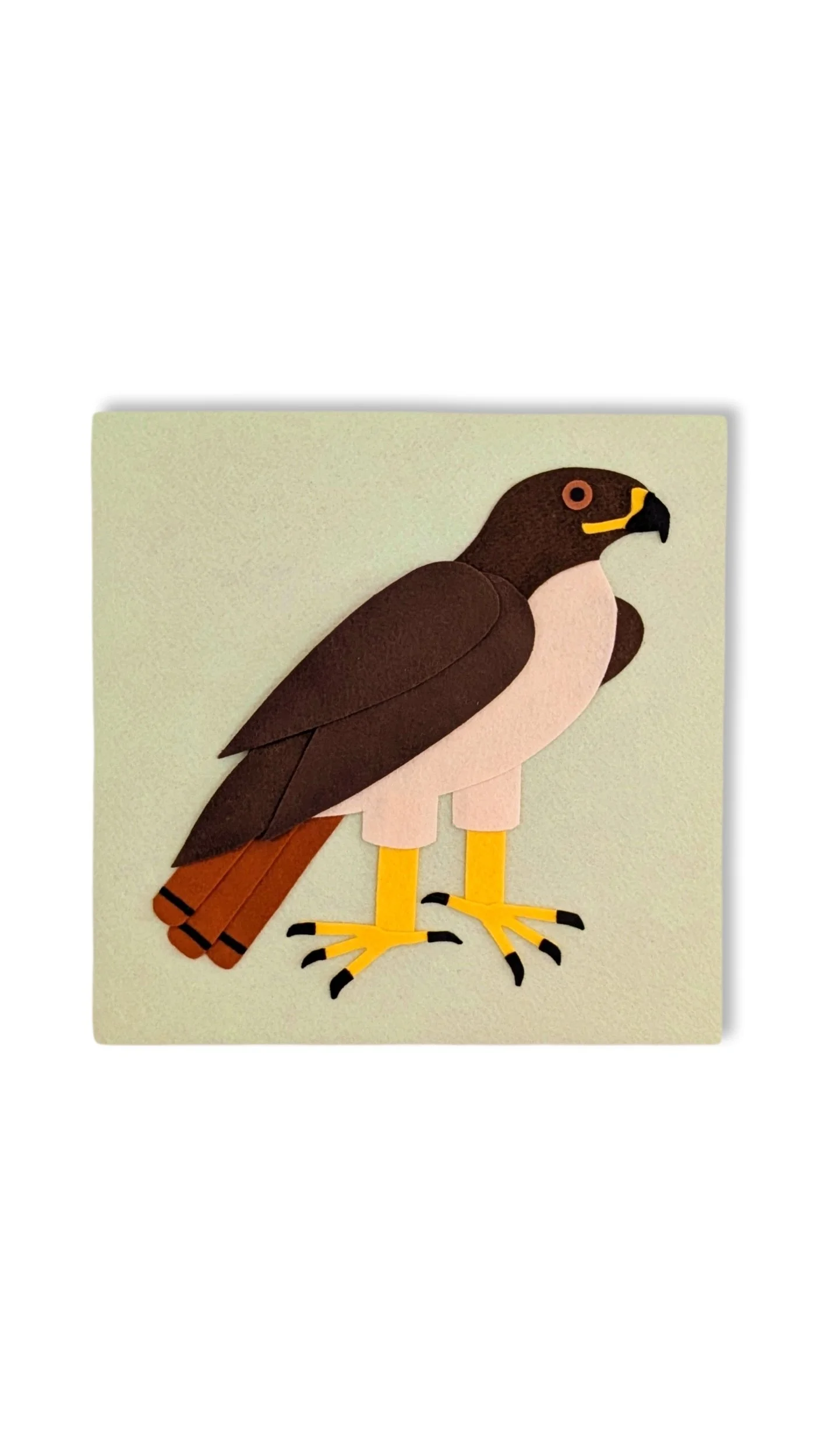 Wool Felt Red Tail Hawk with Soft Green Background.