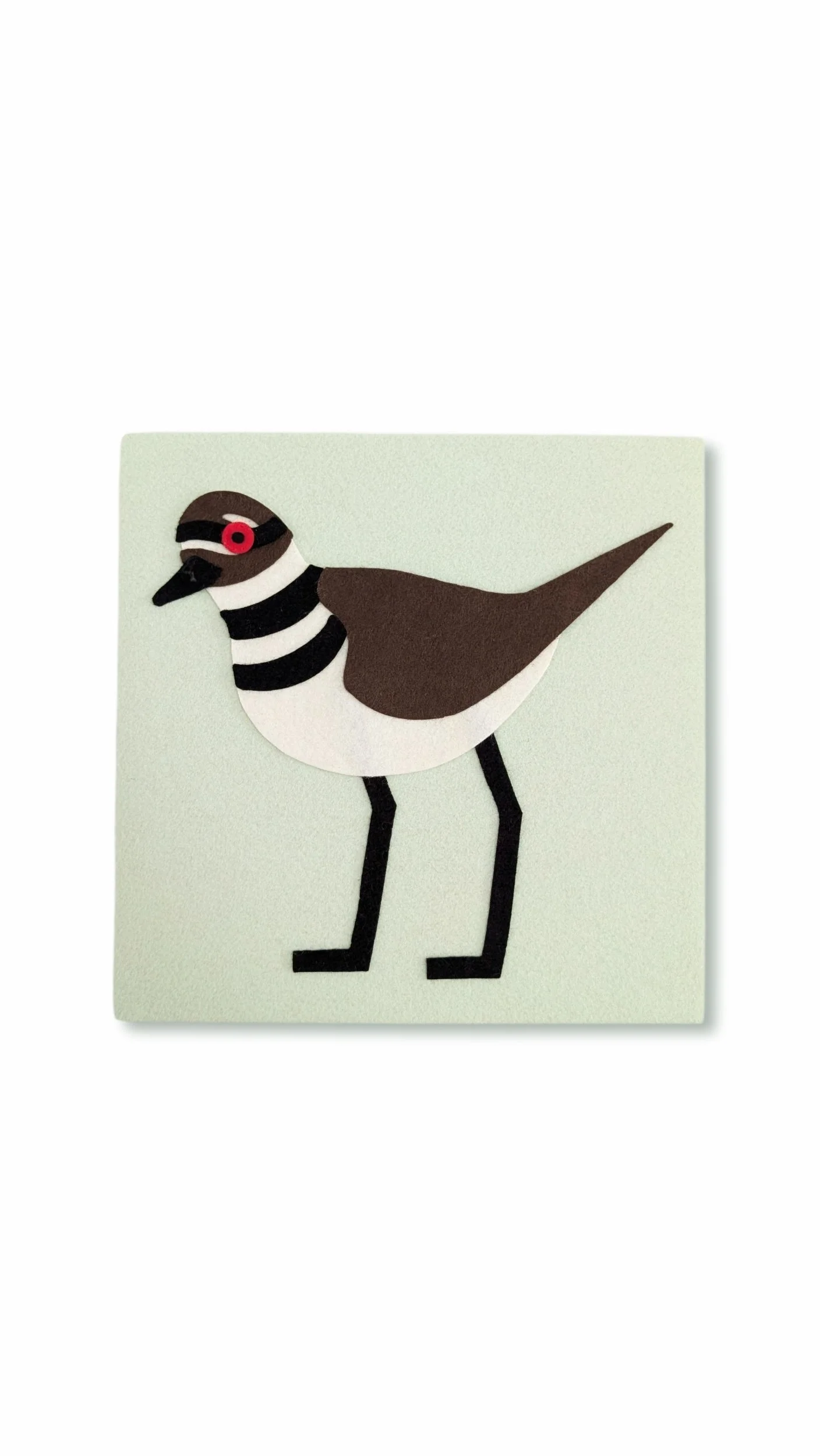 Wool Felt Killdeer with Soft Mint Green Background.
